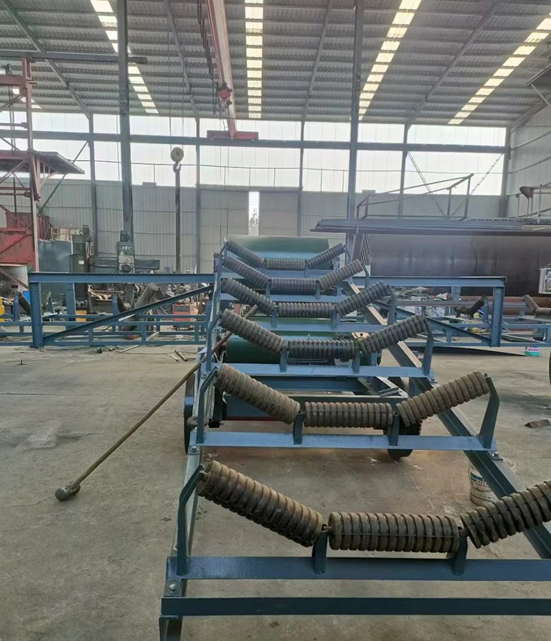 皮帶輸送機(jī)是一種摩擦驅(qū)動(dòng)以連續(xù)方式運(yùn)輸物料的機(jī)械。主要由機(jī)架、輸送帶、托輥、滾筒、張緊裝置、傳動(dòng)裝置等組成。它可以將物料在一定的輸送線上,從供料點(diǎn)到卸料點(diǎn)間形成一種物料的輸送流程。它既可以進(jìn)行碎散物料的輸送,也可以進(jìn)行成件物品的輸送。除進(jìn)行純粹的物料輸送外,還可以與各工業(yè)企業(yè)生產(chǎn)流程中的工藝過程的要求相配合,形成有節(jié)奏的流水作業(yè)運(yùn)輸線。